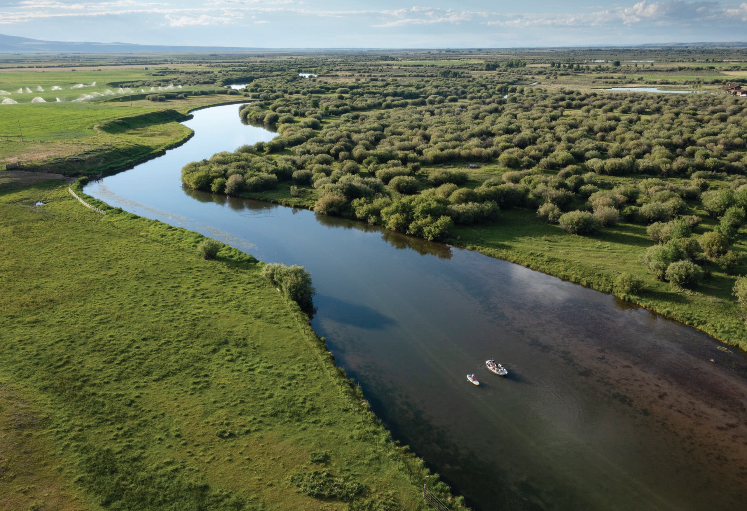 An evening float down the Teton River is a classic Teton Valley experience. By mid-summer, the river is slow and lazy. Boaters can sit back and watch the world drift by as the river twists its way through thickets of willow and past open farmland.