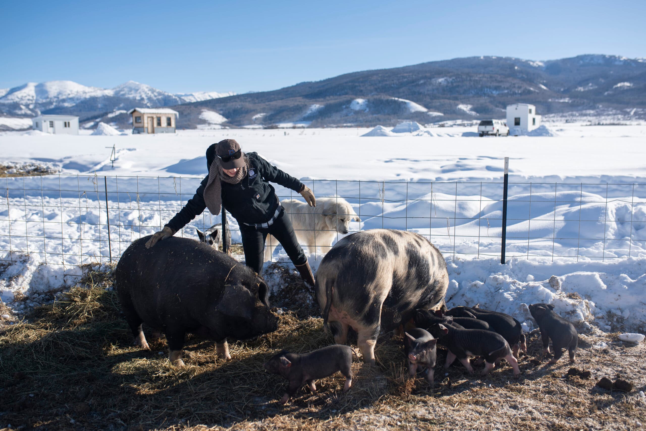 Ursula roots around amidst a lush crop of alfalfa, snorting as she pushes aside the dirt with her snout. At about 700 pounds, she moves with a distinct but dignified waddle. She’s the queen pig—the best mother—at Late Bloomer Ranch in Driggs.