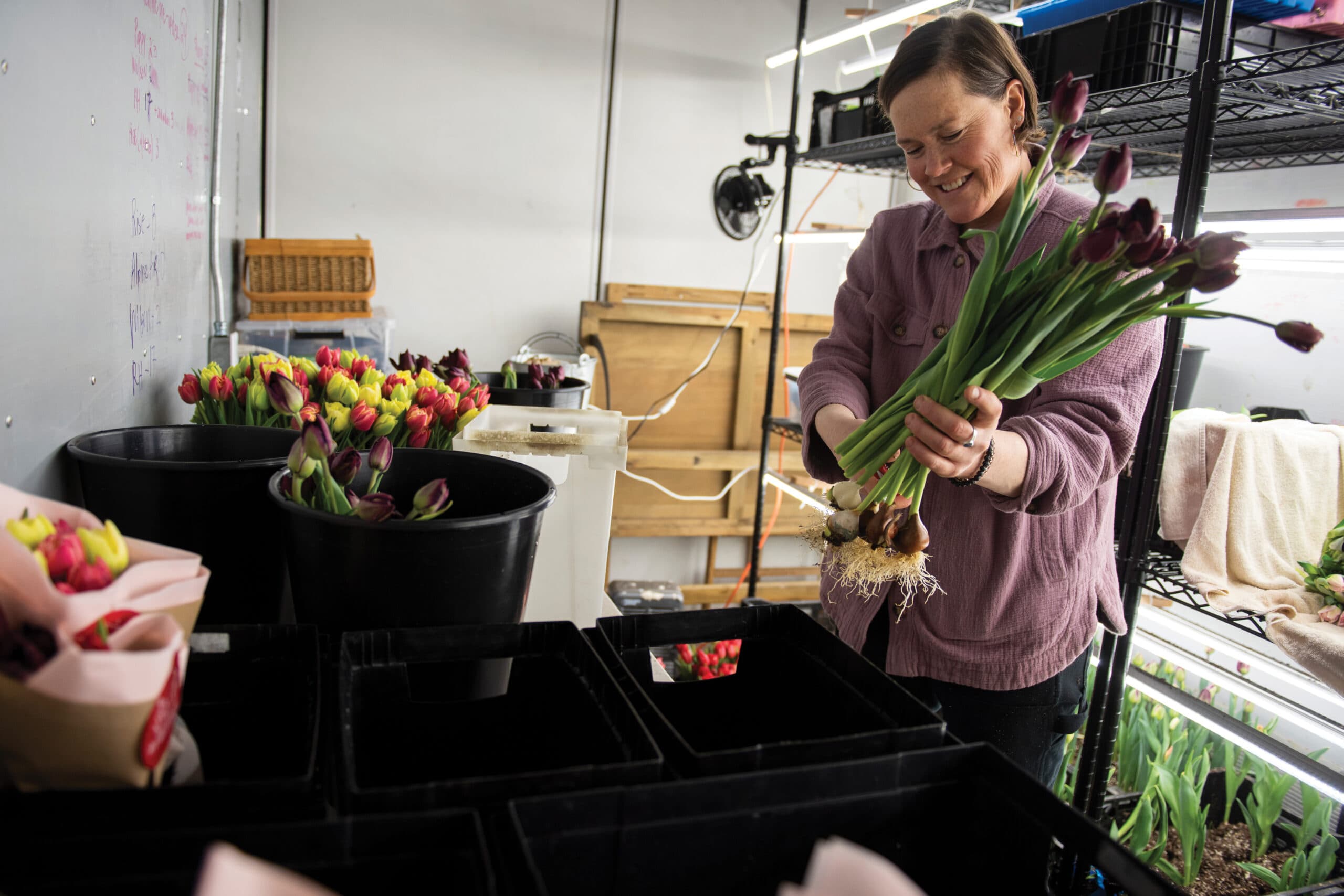 Then, the share was just greenhouse-grown tulips. That fall, to improve both volume and success of their new-found tulip romance, the partners attended a workshop detailing methods for growing them indoors.