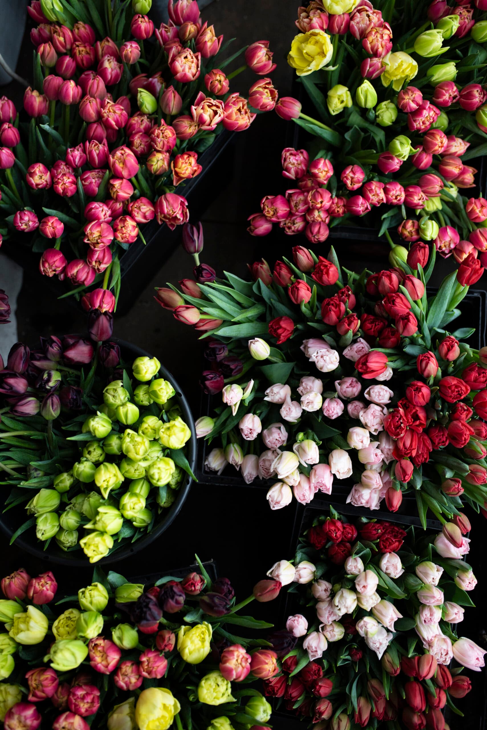 Always conscious of their environmental footprint, Emily notes that Red House composts spent tulip bulbs with foliage and discarded soil. Their growing space is so tight and well-insulated that heating requirements are minimal, and when tulips are done, the space doubles as both cold storage for summer flowers and as a studio for Katie’s designs.
