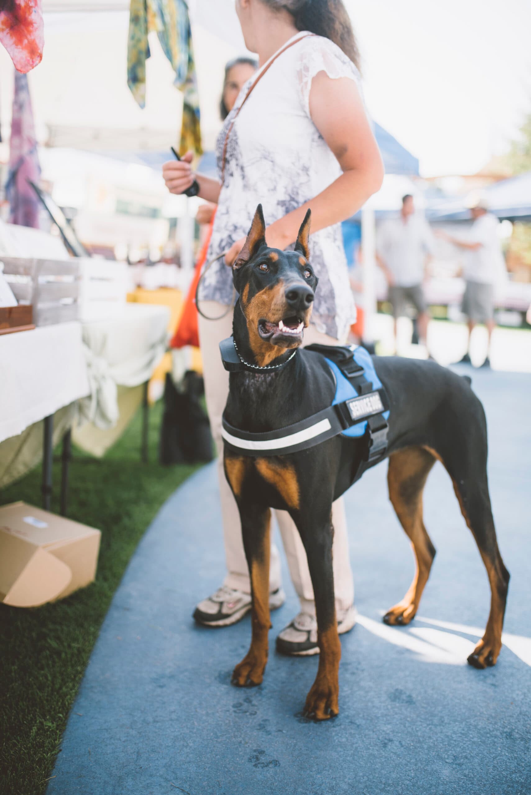 Addie is a service-dog-in-training with local trainer Ronda Bowser. Addie’s limited protection skill set is intended to suit a person living with post-traumatic stress disorder (PTSD). These skills are honed to help her companion discern safe situations from alarming ones. Her job is not to show aggression, but to stay alert to the world around her, communicate her observations, and provide constant companionship to someone benefiting from the buddy system. (Addie was successfully matched with an ideal forever home last fall.)
