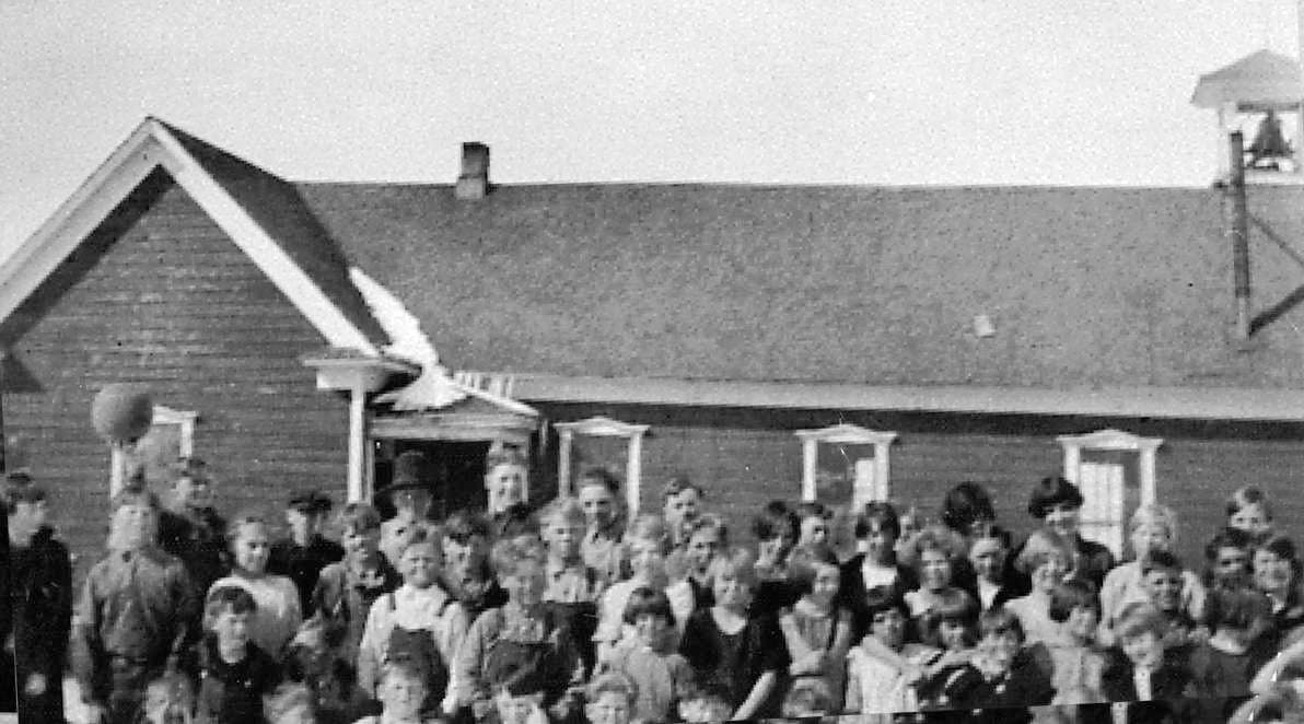 Sunday school children pose for a photography in front of the old Tetonia Ward. Photo courtesy of Teton Valley Museum.