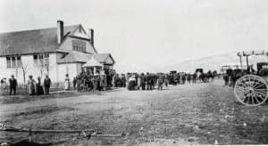 Because of the time (four years) and money (up to a $1,000 or more) involved, relatively few desert-land entries were awarded in the early days. Henry Wallace was among the fortunate ones, and upon receiving title to this desert-land entry with son Howard’s onsite diligence, he donated 160 acres for the Driggs townsite in 1901. A town, already born, was beginning to mature.