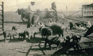 Large bands of sheep passed through Driggs from shearing corrals west of town along what was soon to be called Buxton Road (and was later renamed Bates Road), headed up Little Avenue to summer range in the mountains. “The melting snow is making lower Little Avenue and Main Street look like a lazy man’s stable or barnyard. Some of our citizens have suggested that the Board of Village Trustees send the marshal out with the fire hose and wash the stuff away,” reported the Teton Valley News.