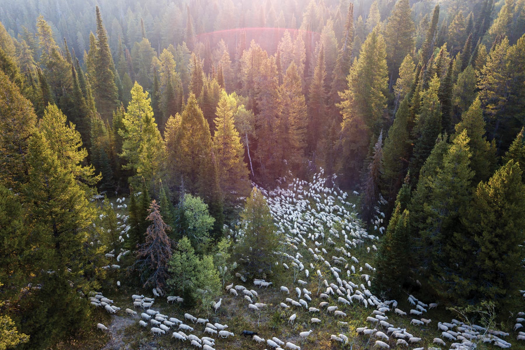 Hailing from Scotland and Ireland, the couple were used to running sheep on pastures, and they started out with a few hundred sheep. They quickly learned that the grazing practices followed in their homeland didn’t quite transfer to the big seasonal swings in the Tetons, which meant drier pastures and a need to move the sheep further than a few miles down the road in the winter months.