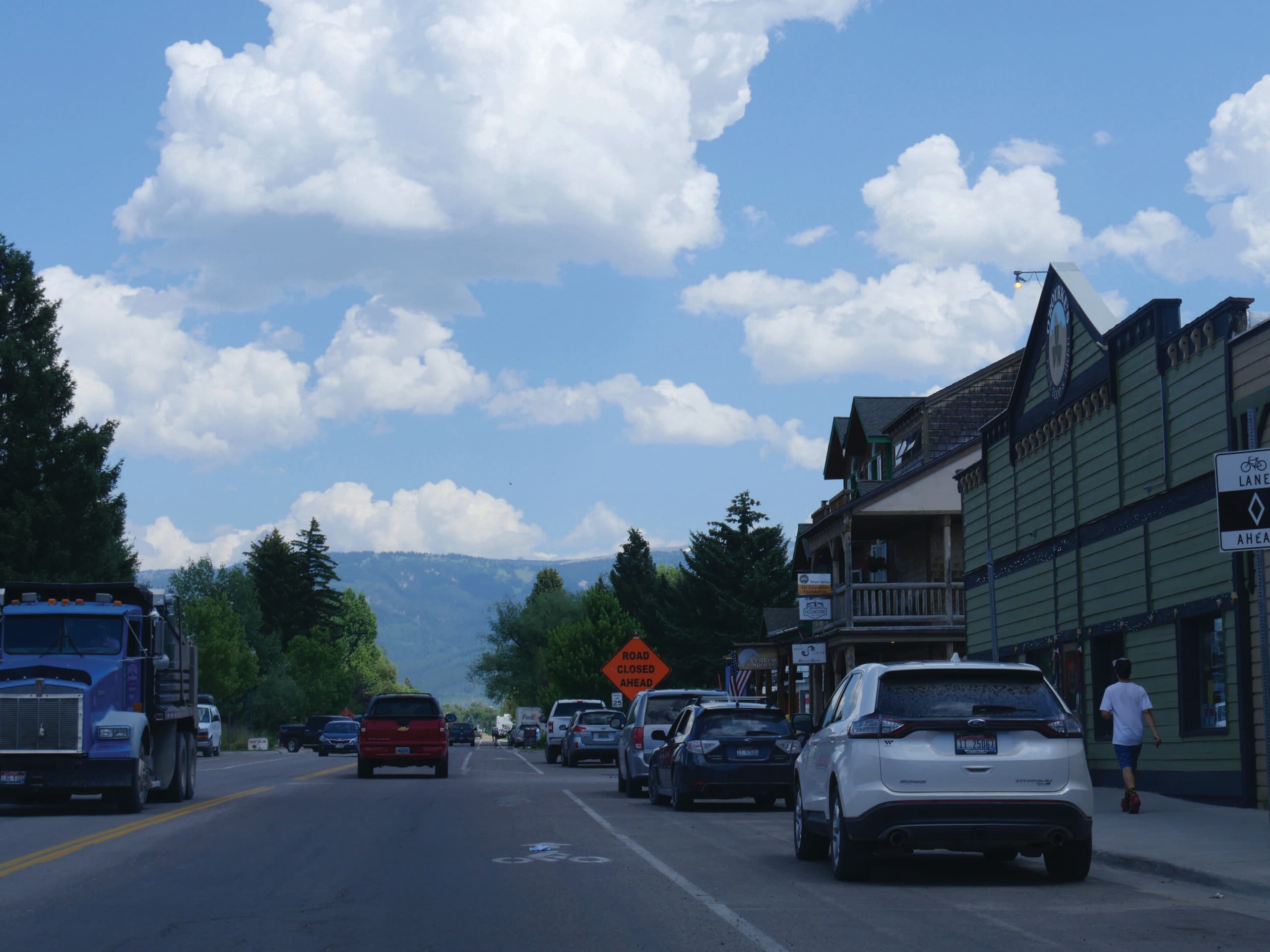 Driggs, Idaho- August 2018: Light traffic along the street in Driggs.