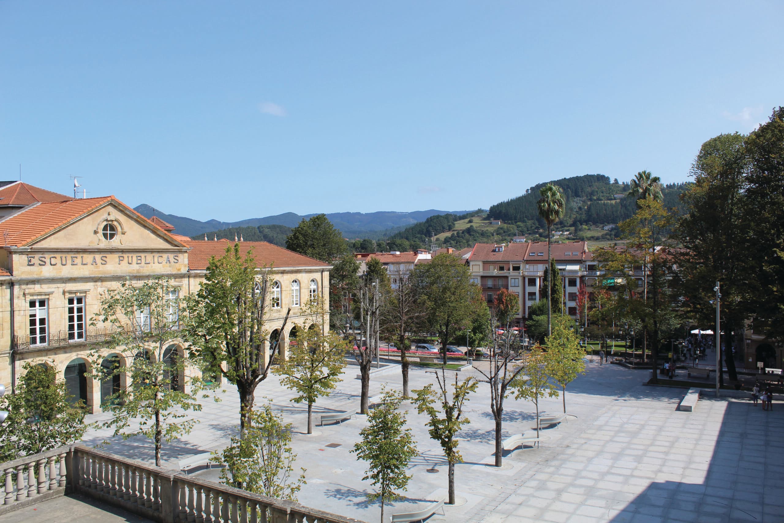 Gernika, Spain – September 10, 2020: Traditional renewed houses in Gernika. The town was almost destroyed by the bombing during the Spanish Civil War (1936-1936)