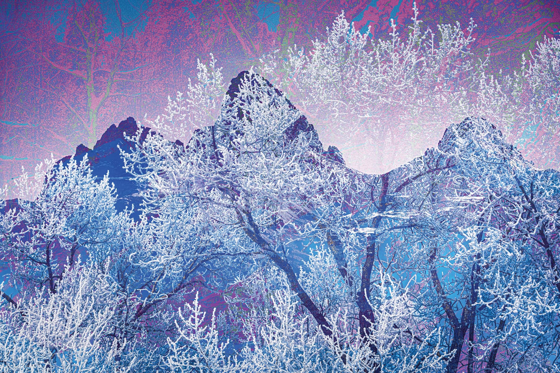 Today, Linda is retired after decades as a portrait photographer in Jackson, Wyoming, where she frequently shot weddings. But she uses the term “retired” rather loosely. Her day-to-day is a flurry of creativity, with a lot of her energy focused on fine artwork that involves digitally layering several photographs and adding her own artistic impression to each one. She sells her work around the valley at art shows and the farmers market, and she keeps a dedicated following. Her art hangs in homes on every continent except Antarctica.