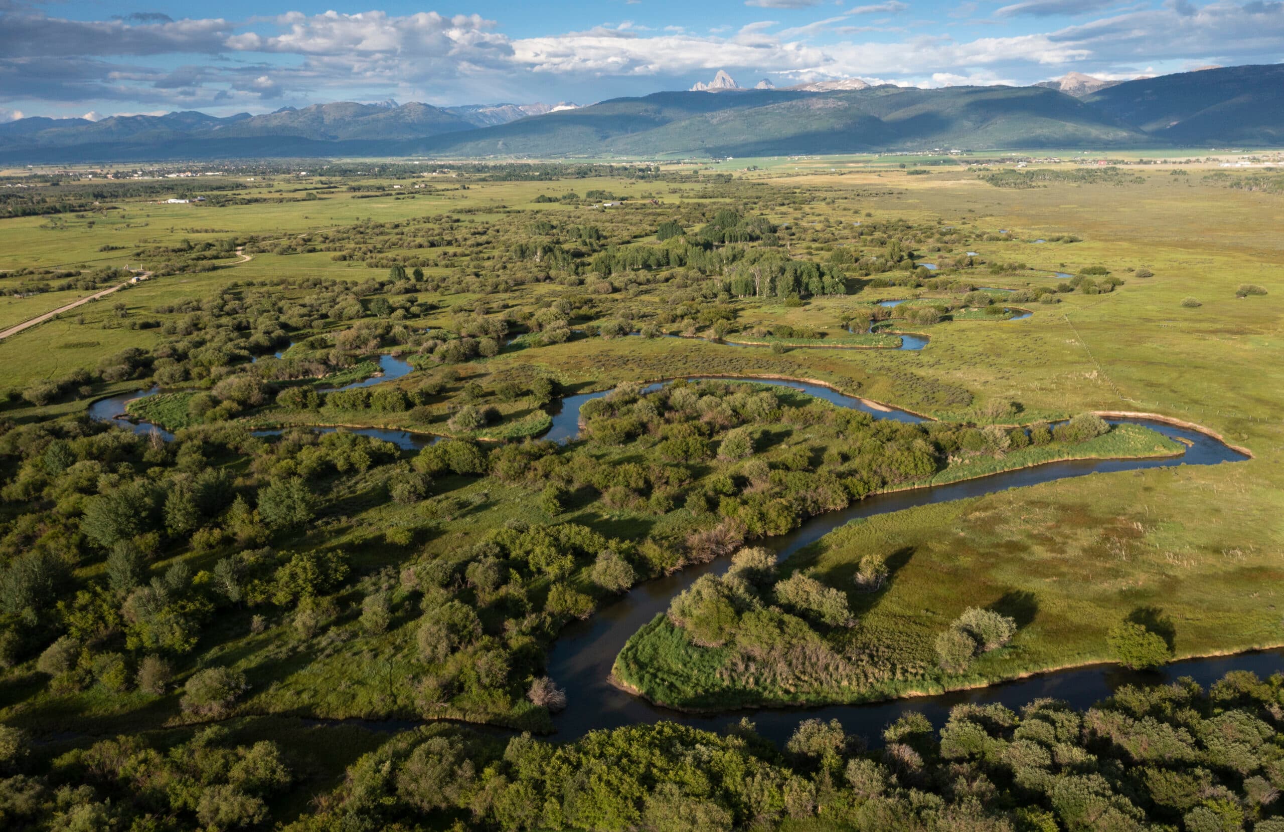 Early summer flow water meanders by the confluence of Teton Creek and the Teton River, just southwest of the city of Driggs, Idaho. Photo by David Stubbs