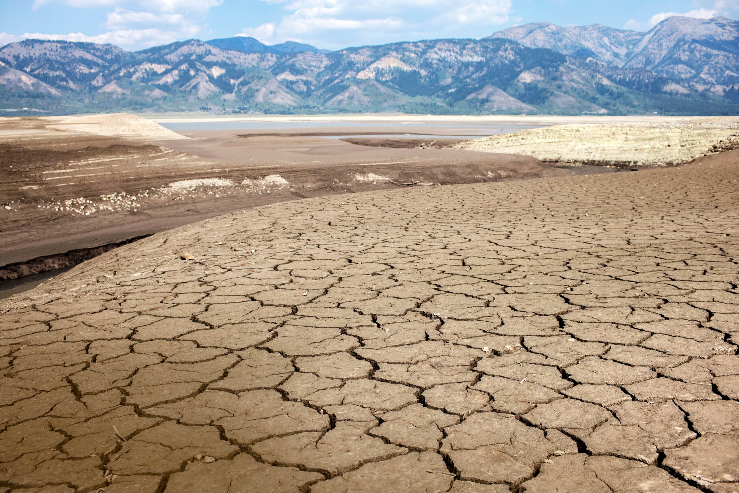 A dry lakebed is seen at the Palisades Reservoir, on the Snake river in Bonneville County, Idaho August 25, 2021. According to the Bureau of Reclamation, the reservoir is 24% full following a summer of drought.