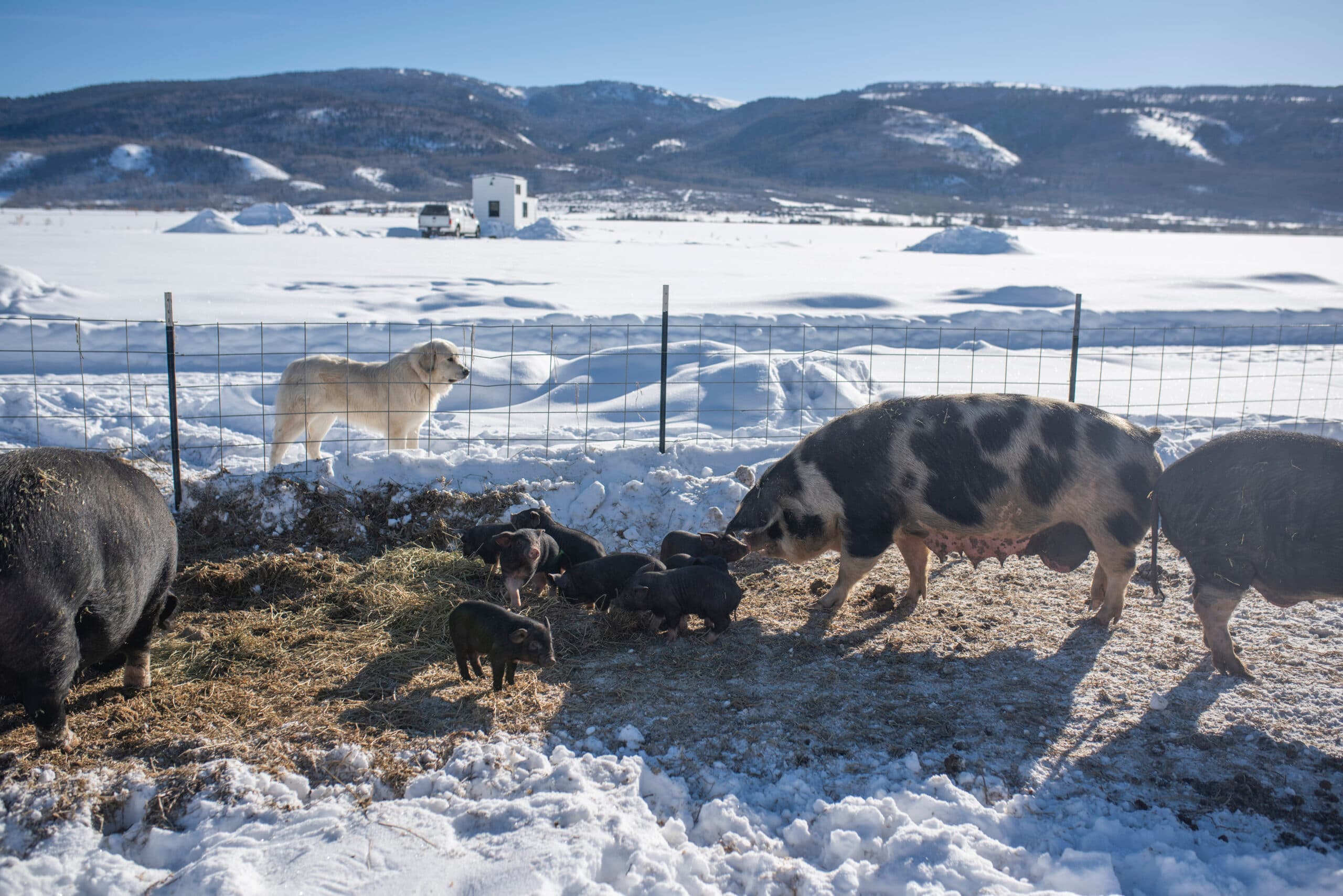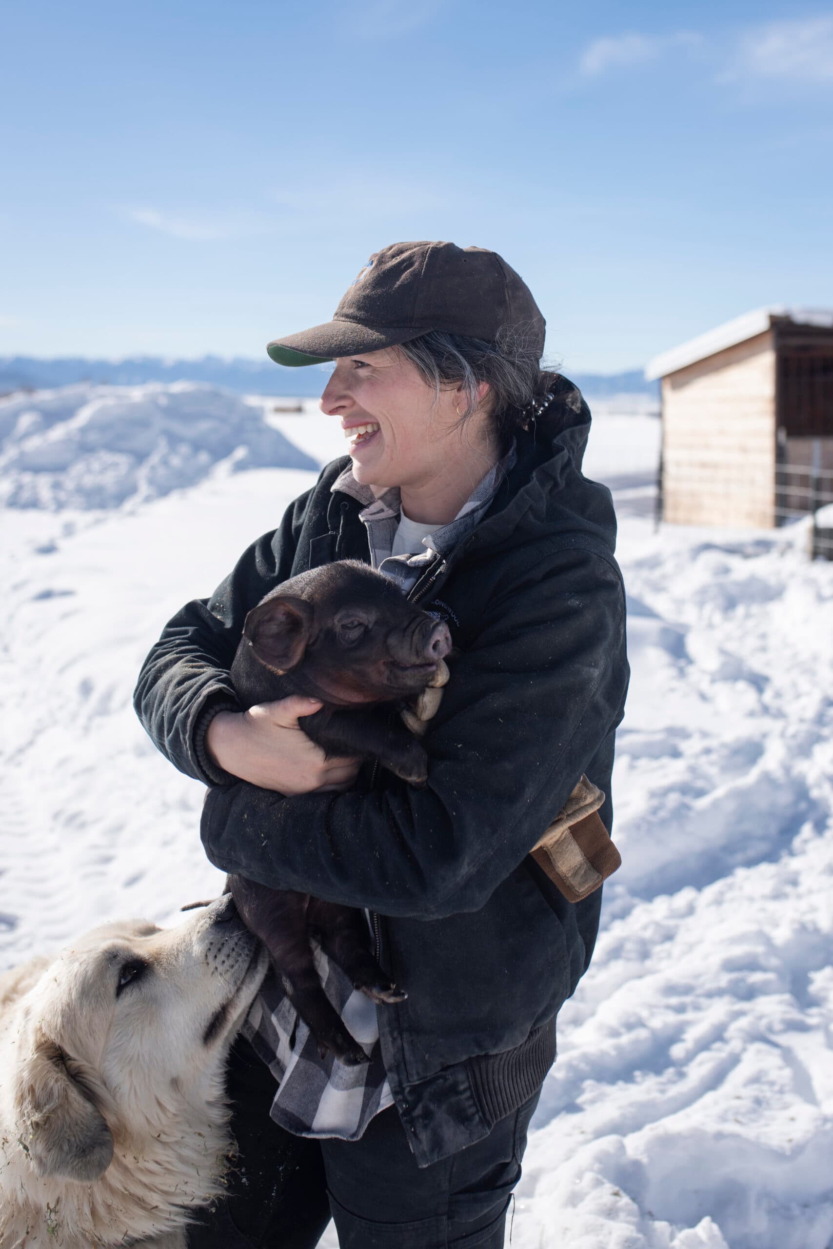 Ursula roots around amidst a lush crop of alfalfa, snorting as she pushes aside the dirt with her snout. At about 700 pounds, she moves with a distinct but dignified waddle. She’s the queen pig—the best mother—at Late Bloomer Ranch in Driggs.