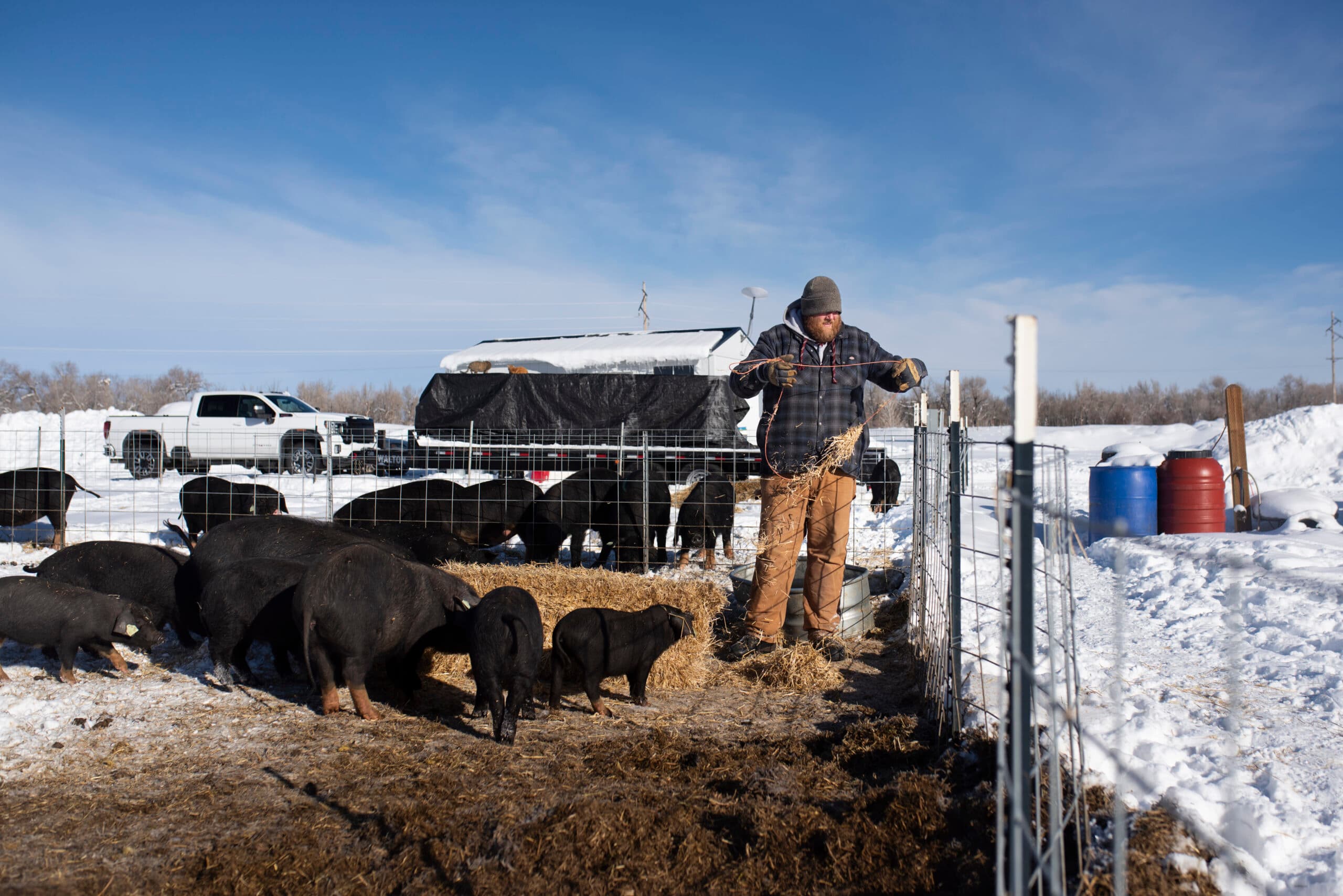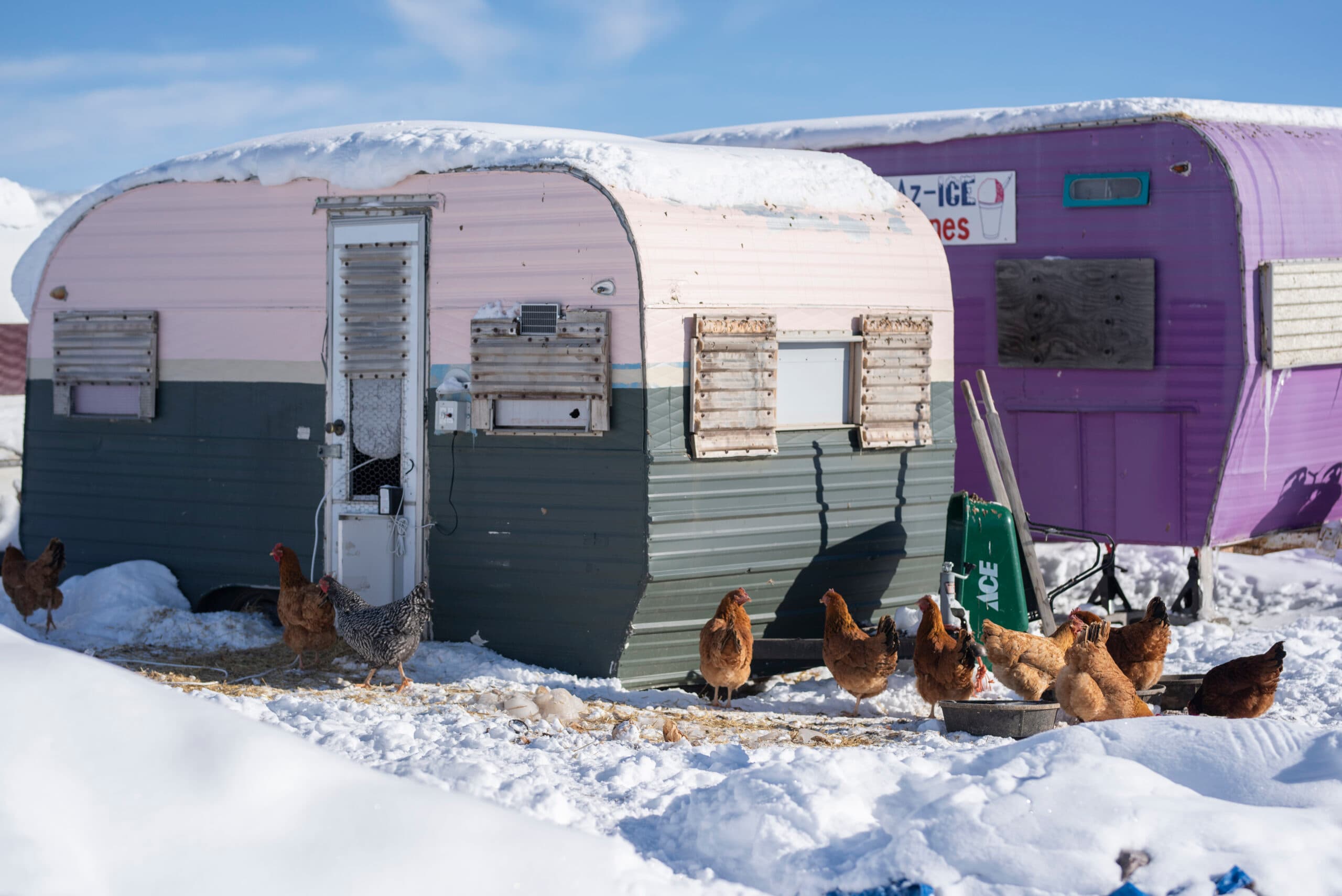 Corinne and her crew move fences for the ranch’s pigs, sheep, and chickens every three days to ensure there is always fresh forage for them, and so the alfalfa can rebound from being grazed. It’s an intensive form of raising animals and requires a lot of labor, but Corinne says you can tell the difference in the meat.