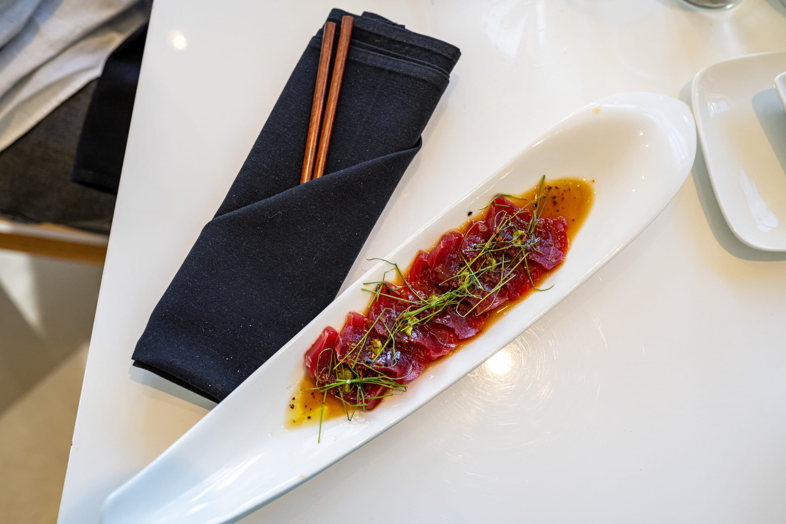 My husband Kenny and I opted for our first night enjoying this newish valley hotspot to be amongst a dozen friends replete with order after order of sushi. (Truly, I think between us all, the entire menu was ordered and not a person left unsatisfied from delicious food and wonderful conversation.) Reservations are highly recommended—we planned far in advance for such a big group—and can be easily made on King Sushi’s website. A spacious bar gives diners a front seat as sushi chefs—led by head chef Charlie Jackson—artfully prepare each vibrant roll. The dining room holds ample seating and in the warmer months, guests can opt to dine al fresco on the patio.
