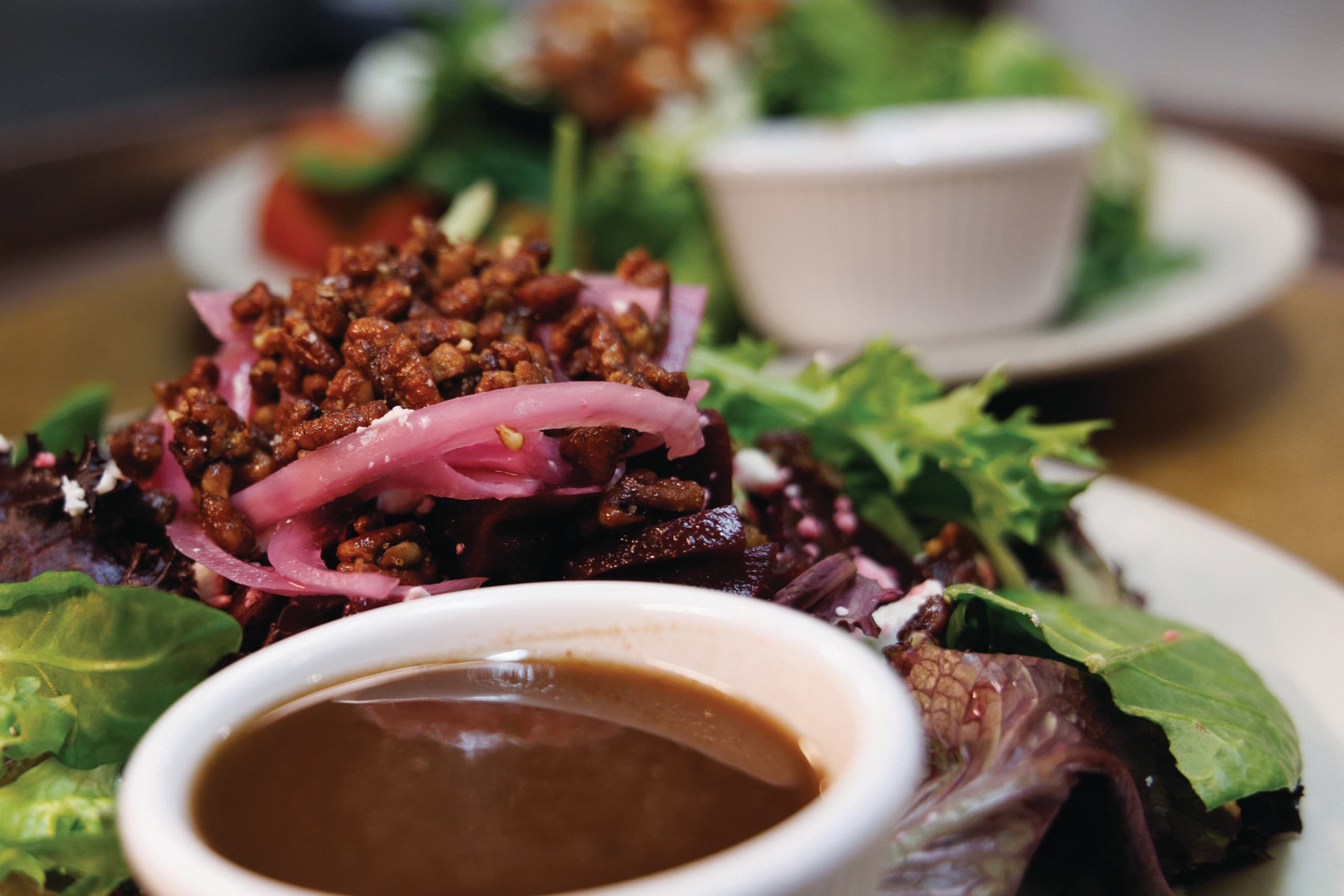 Appetizers at the Wolf more than hold their own. Wonton-wrapped pork potstickers pour on the flavor, while enticing the appetite to be ready for more. Think truffle fries or nachos. And yes, salads, too. But a word to the wise: While a southwestern fajita salad may technically be a dish of leafy greens, at the Wolf it packs a wallop.