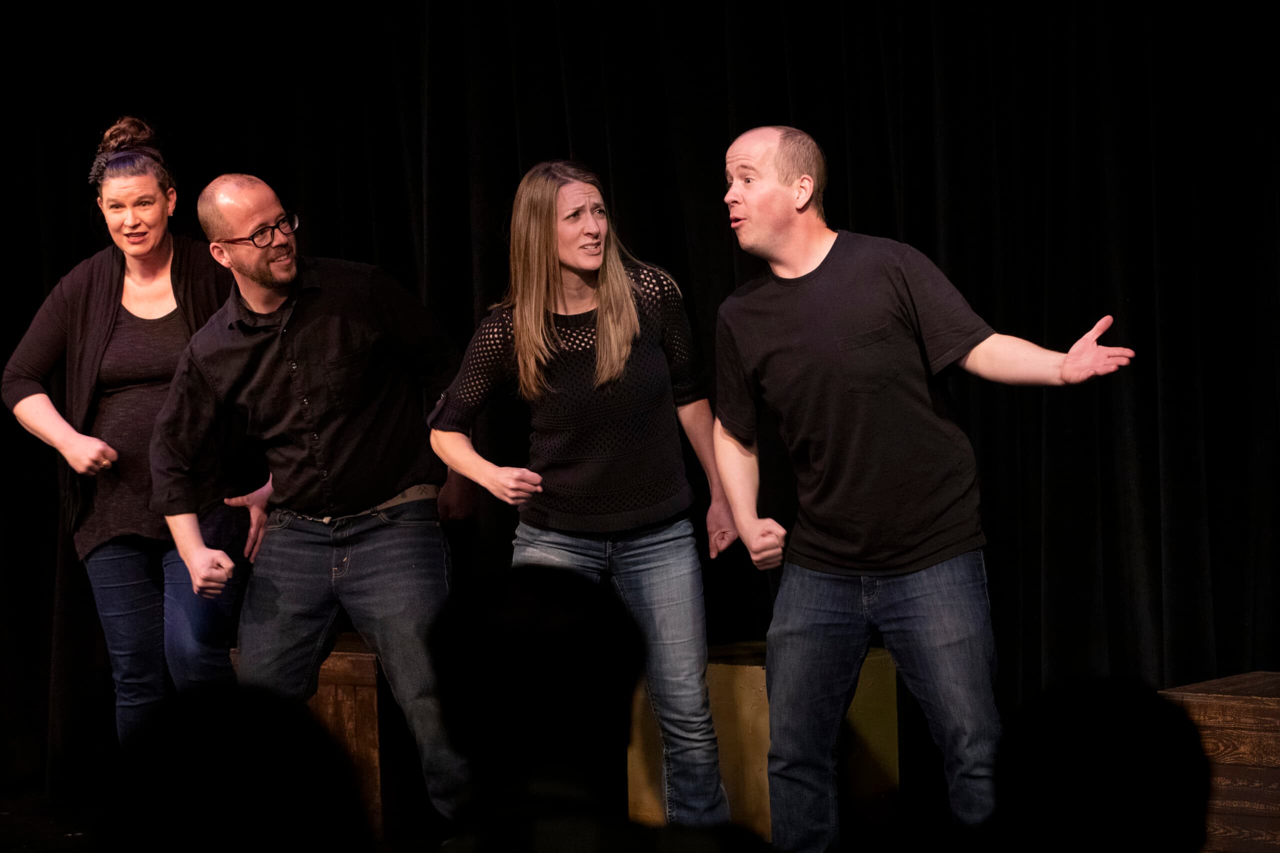 The Laff Staff performs at the Black Box Theatre at the Center for the Arts in Jackson, Wyoming during a winter performance.