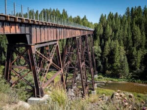 Until you see its two remarkable, gorge-spanning bridges, the Ashton-Tetonia Trail is slow to reveal its railroad-rich past.