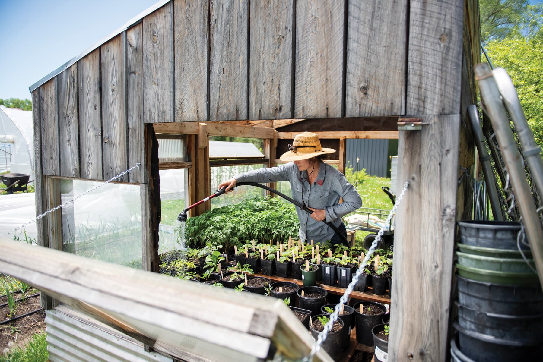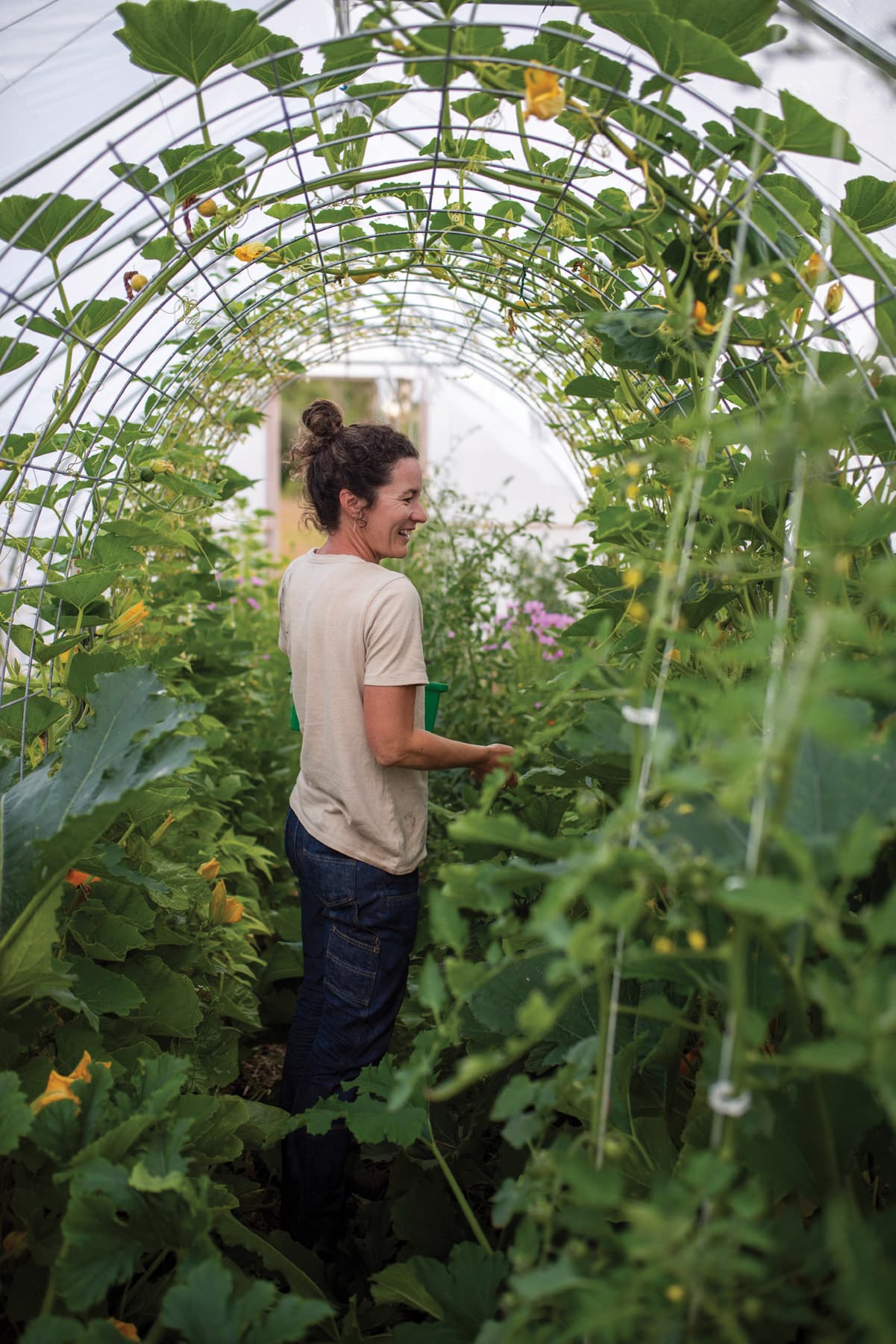 Hidden beneath cottonwood trees lies Owl Meadow Farm, a one-woman growing operation that sits in a sink, or low point, on South Leigh Creek—one of the valley’s coldest spots.