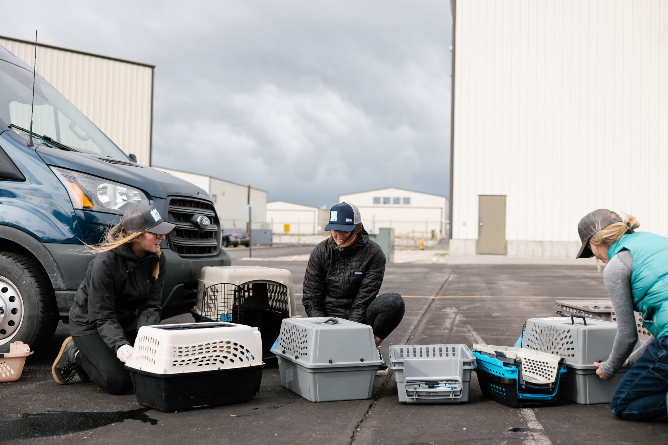 “At some dropoff sites, we will have ten or twenty people involved because we are sending so many animals to different groups,” Kara explains.